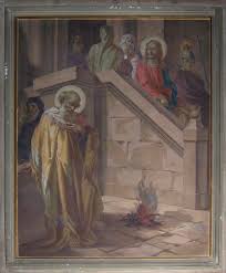 E ancora mi fa meditare il tradimento di Pietro e l'atteggiamento di Gesù di fronte ad esso. Mi ritorna alla mente come è stato presentato nel film della passione di Mel Gibson. Certe scene suscitano alcuni sentimenti particolari. Sono scene forti che ricordano alcune esperienze personali. Il tradimento è sempre in agguato: la nostra fragilità a volte ci fa cadere in cose che non vorremmo fare. Fu così anche per Pietro che sentì tutta l'umiliazione del suo tradimento. Infatti, dopo averlo tradito, s'inginocchia di fronte a Maria e le confessa il suo peccato affermando di non essere degno nemmeno di essere toccato da Lei. Egli trova conforto fra le braccia di Maria. Questo c'insegna che la Madonna ha un cuore grande e che bisogna ricorrere a Lei pure quando tradiamo Suo Figlio, sicuri di trovare conforto e aiuto. Lo sguardo che corre tra Gesù e Pietro è impressionante. In esso c'è l'amore intenso e sublime di Gesù che sta già subendo sofferenze terribili, un'altra spada, quella del tradimento da parte degli amici, di coloro che lo hanno seguito più da vicino, pesa sul suo Cuore...sulla sua solitudine già così profonda...E' l'abbandono totale e la sofferenza di chi ha tradito e sa di aver ucciso un uomo che sta già per morire...
